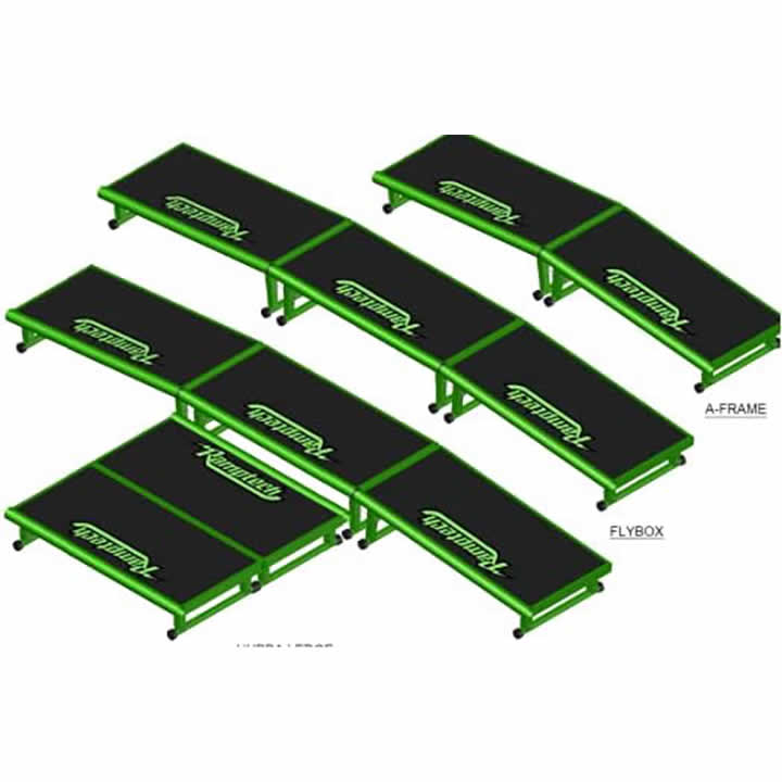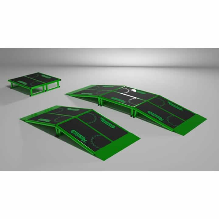 スケートトリップに最適で、集合住宅での保管にも最適です。連結することで簡単に移動式スケートパークを作ることができ、かつセクションのレイアウト変更や撤収も容易です。