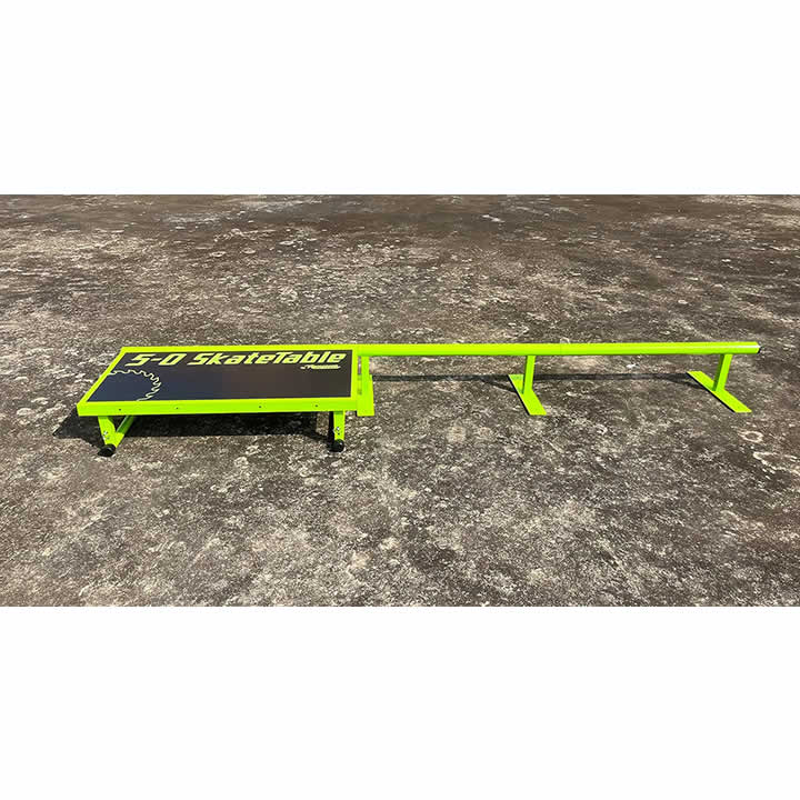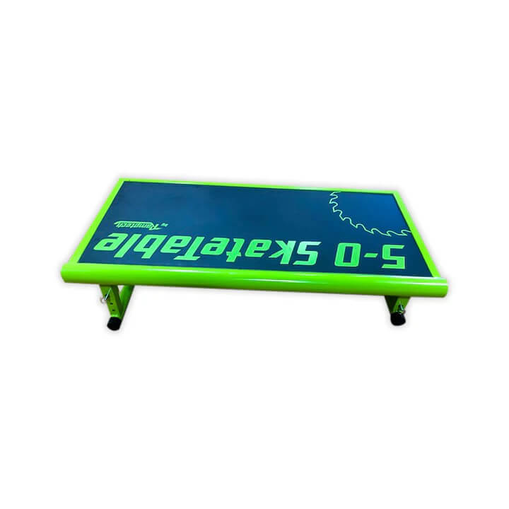 5-0スケートテーブルを使ったカーブボックス、マニュアルパッド、キッカー、スロープ、スパイン、グラインドレールはスケートボード、インラインスケート、BMX、キックスクーターのセッションに耐える十分な強度があります。